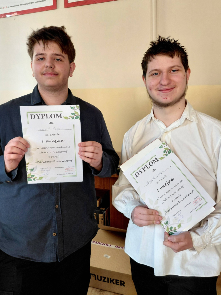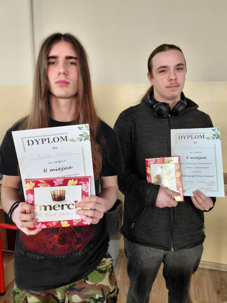Dnia 20 marca 2026 roku w naszej szkole obchodziliśmy Pierwszy Dzień Wiosny zorganizowany przez Samorząd Uczniowski. Świętowanie rozpoczęliśmy od powitania wszystkich gości oraz przemówienia Pana Dyrektora Pawła Klimasa, po którym nasze szkolne Kółko Teatralne zaprezentowało piękny występ o Wiośnie, która przybyła do nas po mroźnej zimie. Następnie Tymoteusz Dymanus z klasy 4I zagrał utwór Ozzy Osbourne – Crazy Train. Po muzyczno-teatralnym wstępie przeszliśmy do tradycyjnego turnieju “Jeden z Brzozowej”, który był parodią słynnego teleturnieju pt. “Jeden z Dziesięciu”. Turniej wygrała drużyna z klasy 3I: Franciszek Majcher i Krzysztof Trębacz, zajmując pierwsze miejsce. Tuż za nimi znalazła się drużyna z klasy 4GW: Kajetan Jackiewicz i Jovan Walotek. Trzecie miejsce zajęli Piotr Kochana oraz Kuba Markiewicz z klasy 3GW. Po pełnym emocji turnieju Dyrekcja wręczyła zwycięzcom nagrody, a Dzień Wiosny przeniósł się na piętro trzecie, gdzie odbyły się turnieje CS:GO, League of Legends, FIFA, Geoguessr oraz szachy. Warto także wspomnieć o pełnym sportowej rywalizacji turnieju Tenisa Stołowego organizowanego przez nauczycieli wychowania fizycznego, który odbył się na szkolnej siłowni. Po wszystkich turniejach oraz po wręczeniu nagród zwycięzcom nasi uczniowie opuścili szkołę z uśmiechem na twarzy.