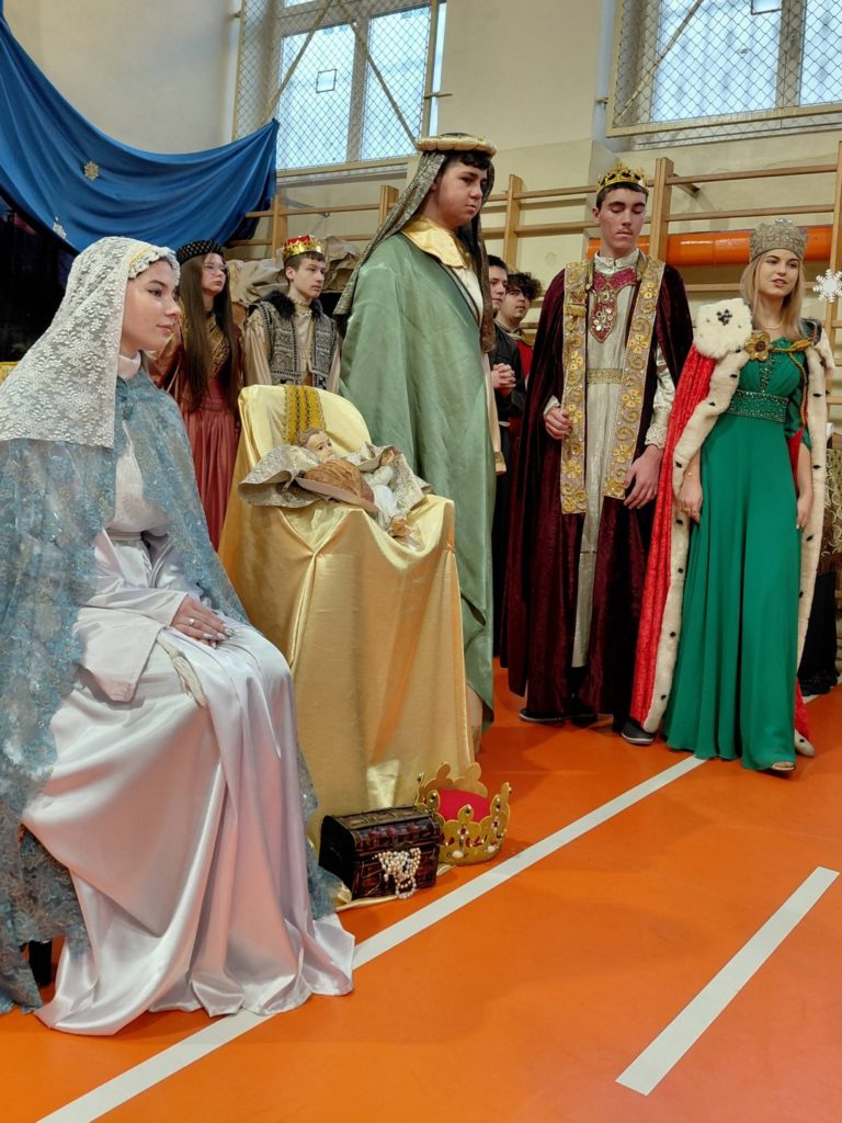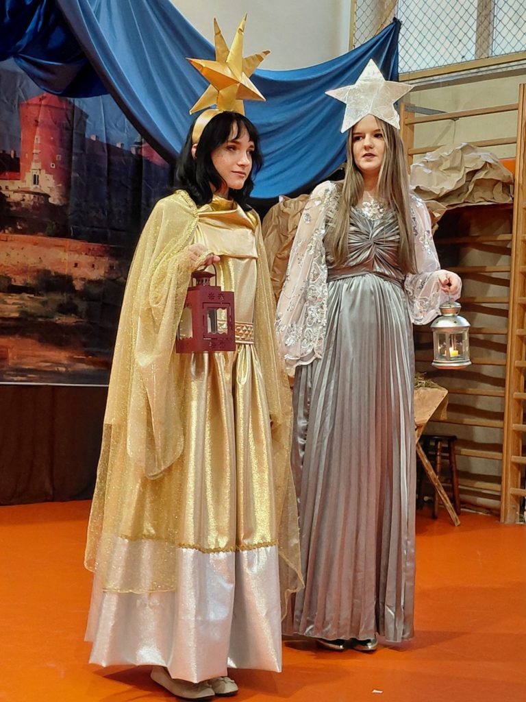 W piątek, w ostatnim dniu nauki przed świąteczną przerwą, po klasowych wigiliach nadszedł moment, na który co roku czeka cała nasza społeczność. Jasełka — jedno z najważniejszych i najbardziej poruszających wydarzeń w życiu szkoły. To nie było zwykłe przedstawienie. To opowieść, która porusza serca, zatrzymuje na chwilę codzienny pośpiech i przypomina o tym, co naprawdę ważne.